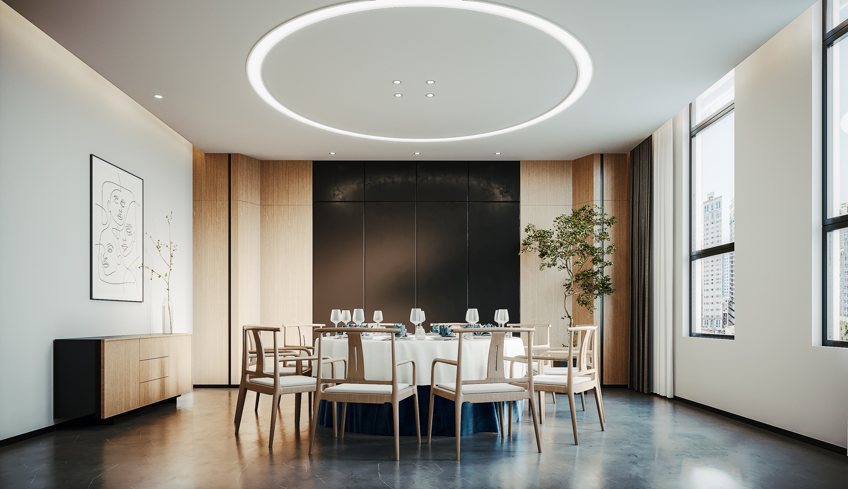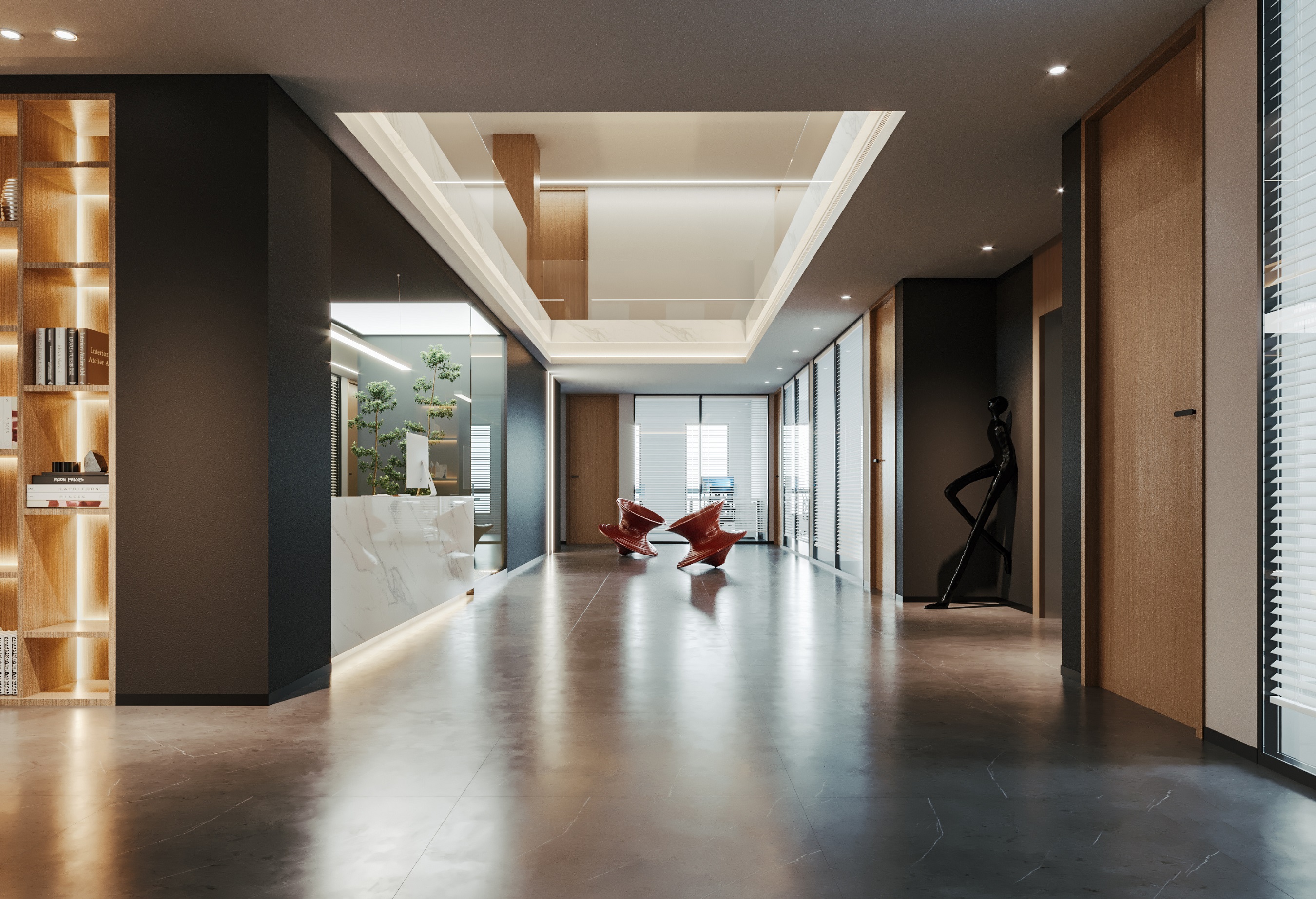 案例說明:本案因地制宜,把握靈動、簡潔、自然、渾厚的設計原則,特提煉出“靈透之材,蓬勃之勢”主題。運用簡練有序的線條組合、時尚通透的玻璃材質、人性化的公共空間布置等裝飾元素,以詮釋厚德載物的學院人文內涵。通過使用玻璃、銀色系列、天然材質以及淺色調的潔凈材料,如玻璃、不銹鋼、石材、木器等,緊緊圍繞本案主題,來構筑靈透之空間。色彩搭配以傳達清透、儒雅、明亮、大氣,亦浸透著高校學府之儒雅靈透與光亮蓬勃,彰顯出靈動與渾厚的自然空間氣韻。