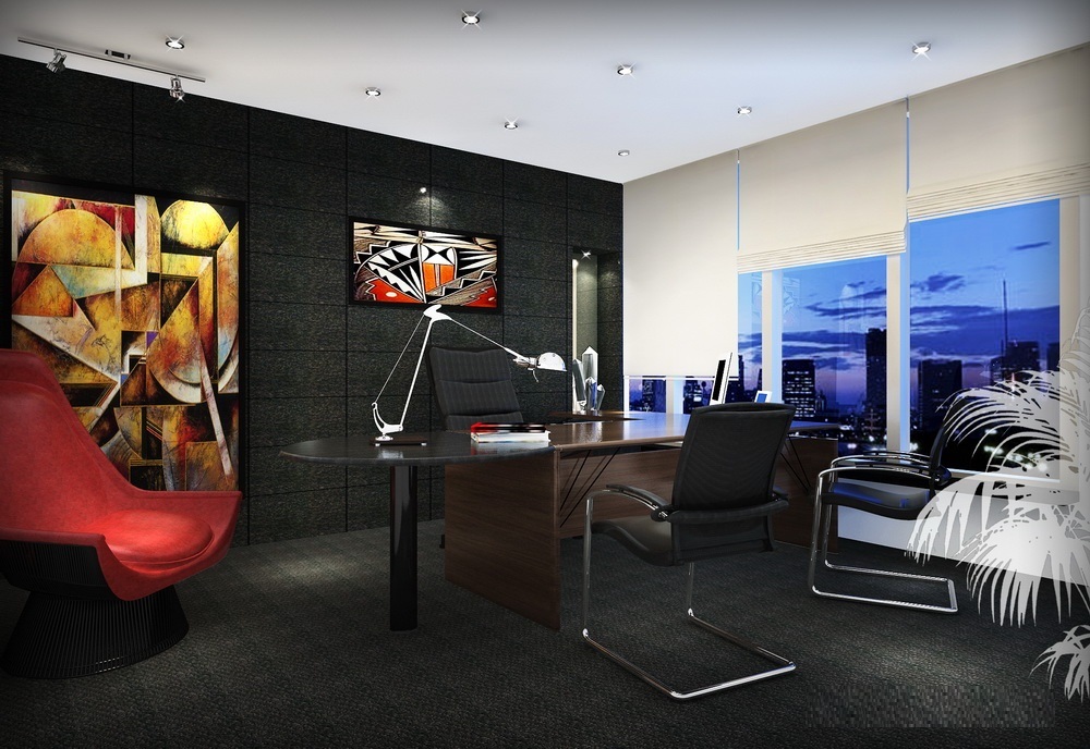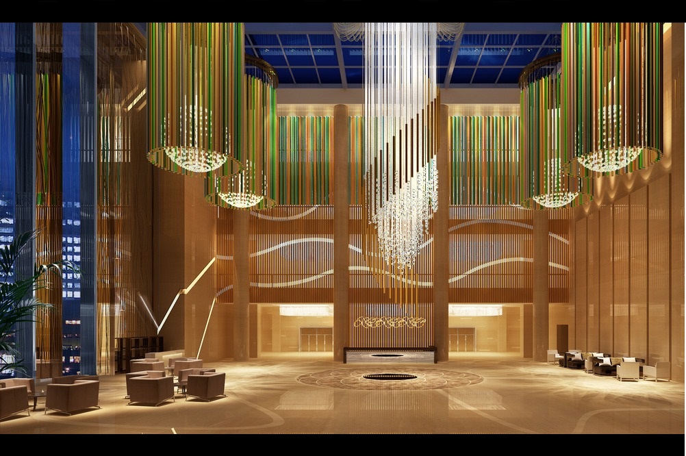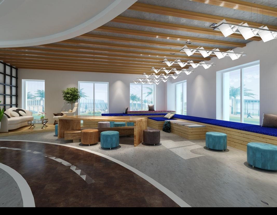 案例說明:本案設計首先闖入眼簾的是企業形象墻,以其企業文化的新興、蓬勃、嚴謹為主題,兩側以居有竹、步步高的銀色墻柱帶來視覺沖擊感,加上企業形象色的類比色、淺色石材及不銹鋼條的運用,顯示出金屬的質感和工業文明的主題;華堂上方呼應以直線為主調、大筆勾勒而出的時尚型弧面吊頂,大直大方顯示出強烈的縱深感,加之以清透、明媚的光色渲染,工整氣派、大家風范,反襯出貴公司辦公樓的現代時尚特性,以干練快捷的設計節奏,展示出質量與效率并舉的時代精神。