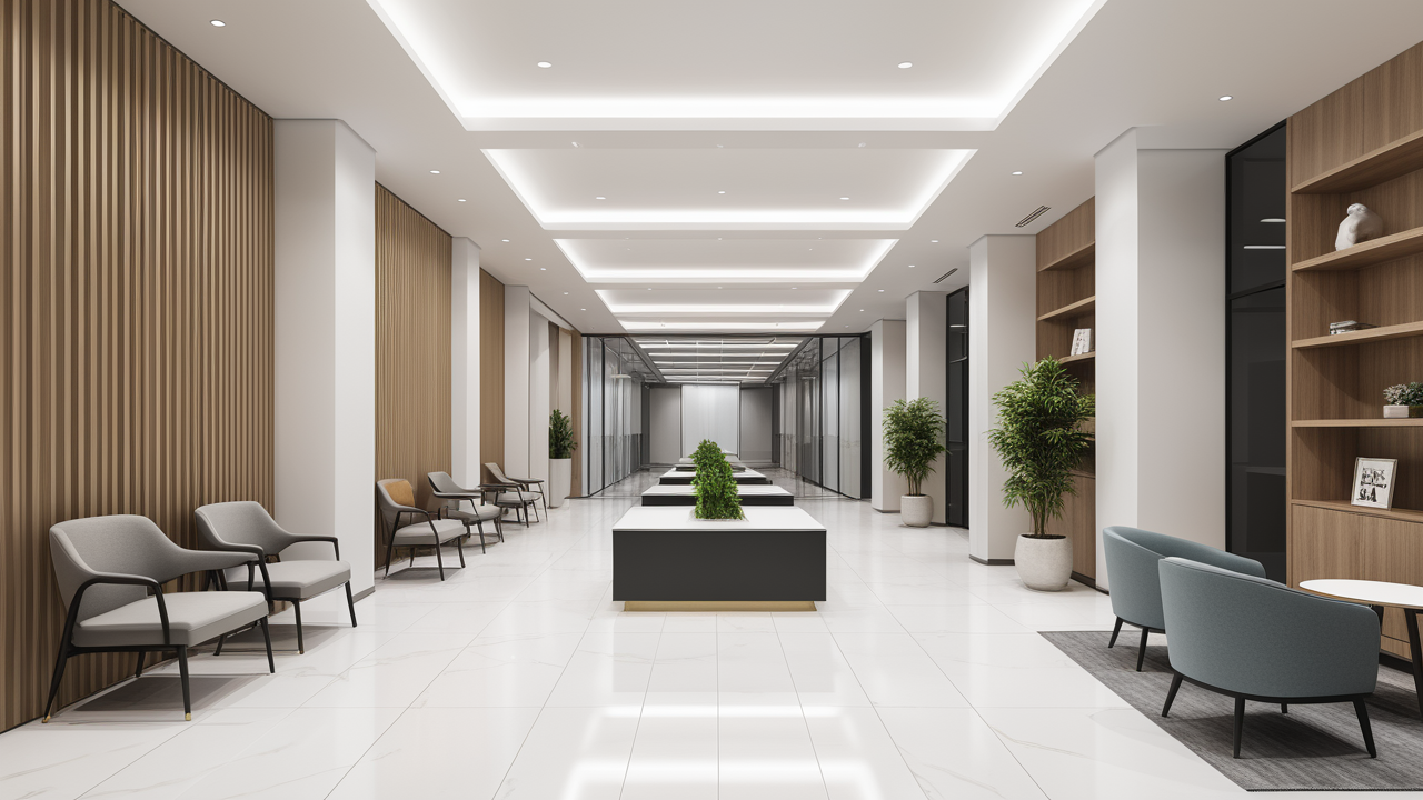 * 鏡面巧妙運用: 在電梯廳、走廊盡頭或特定墻面使用鏡面元素,創造延伸感(避免大面積使用造成眩暈)。